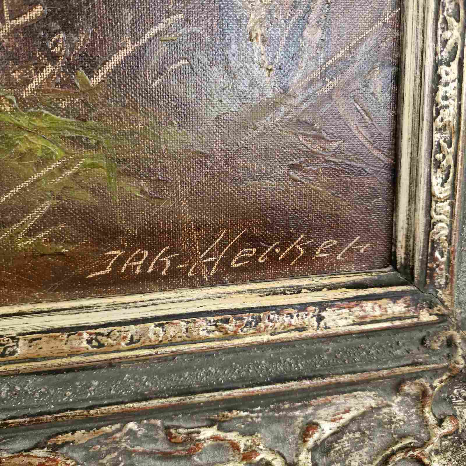 Картината е подписана от автор в долния десен ъгъл, което придава допълнителна автентичност и колекционерска стойност. Композицията създава усещане за дълбочина, спокойствие и естествена хармония. Фината живопис и детайлната обработка свидетелстват за високо художествено майсторство.