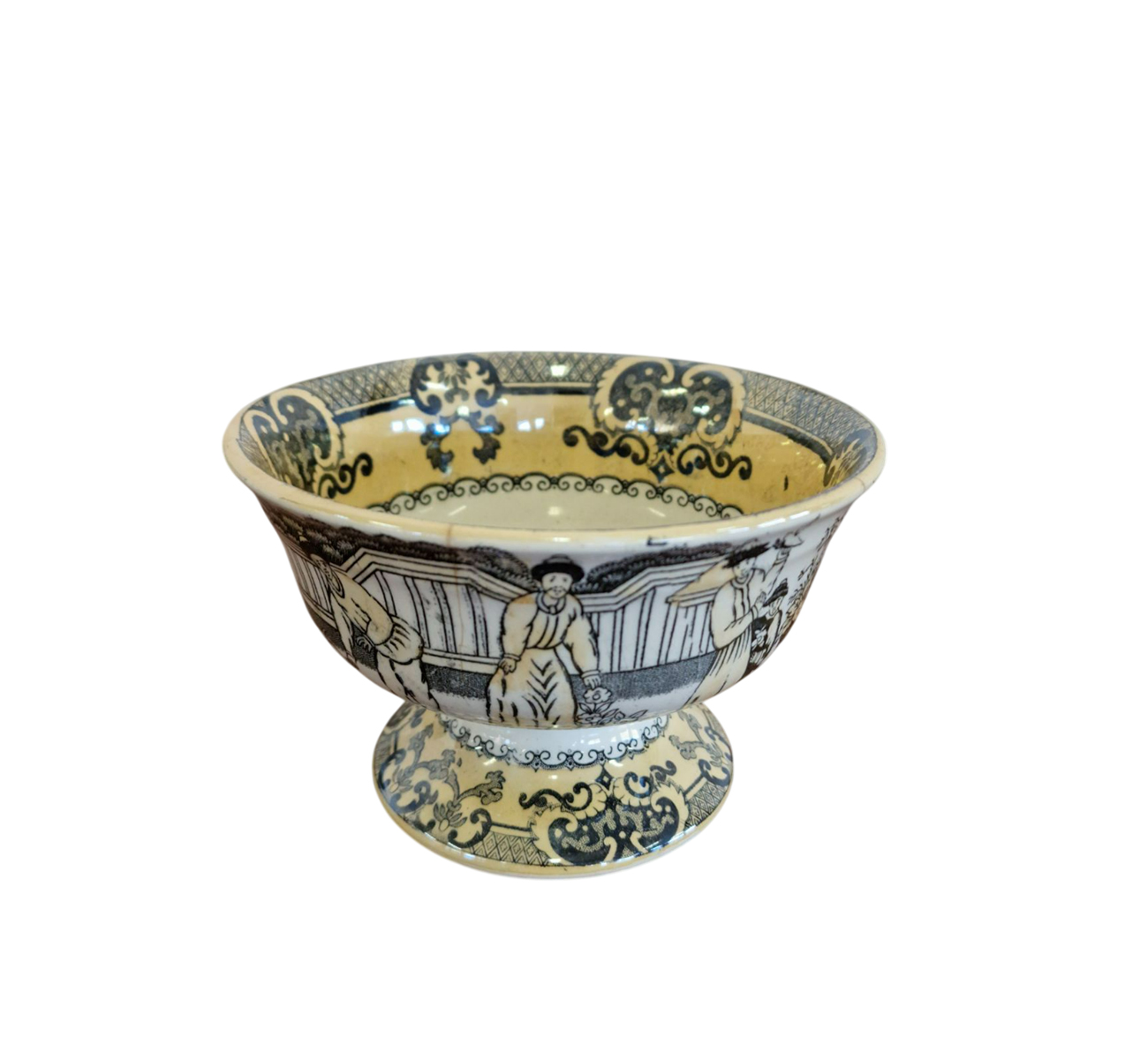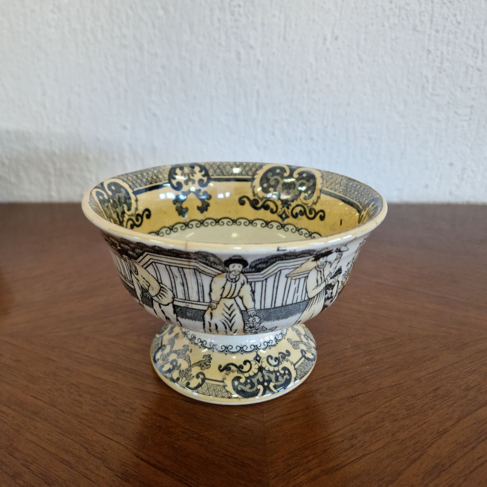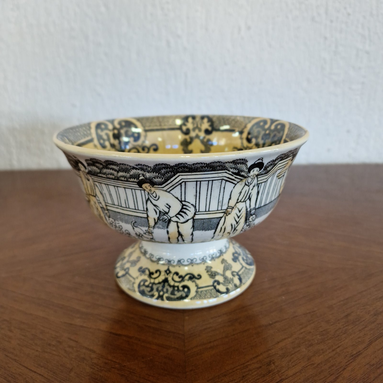 Изискана антична порцеланова купа, отличаваща се с фина изработка и класически стил. Формата и декоративните елементи носят духа на миналото и подчертават автентичния ѝ характер. Купата е подходяща както за колекционери, така и за декоративна употреба, като внася изтънченост и историческа стойност във всеки интериор. Истински акцент за ценители на антикварния порцелан.