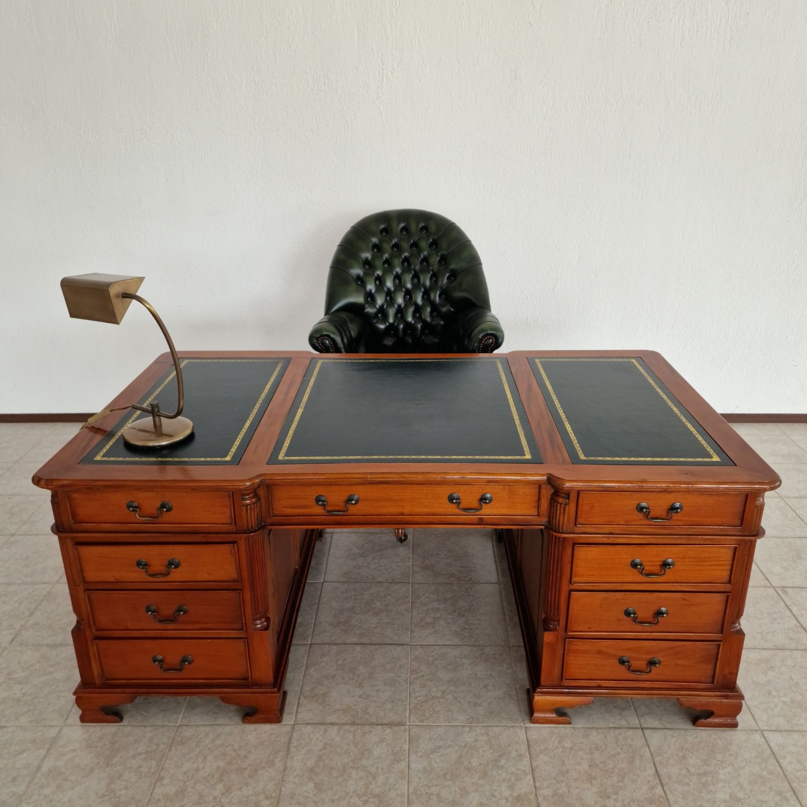И бюрото, и столът са в перфектно състояние, с отлично запазена кожа и фини детайли. Този комплект е истински символ на английската класика – подходящ както за луксозен офис, така и за домашен кабинет, където стилът и комфортът вървят ръка за ръка.