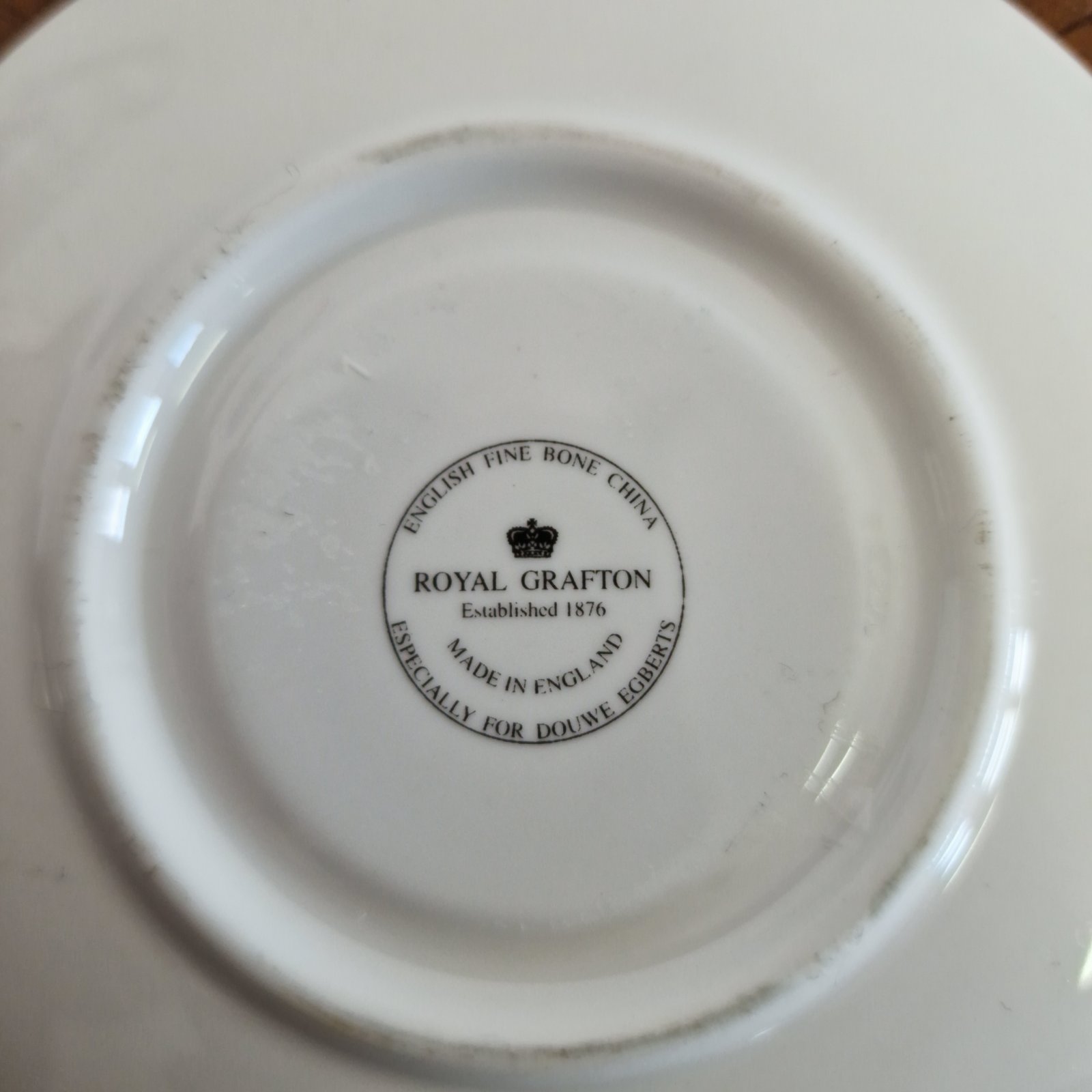 Представяме Ви елегантни чаши от фин костен порцелан Royal Grafton, отличаващи се с изключително качество и класически английски стил. Финото изпълнение, деликатната форма и прецизната декорация придават усещане за лукс и изтънченост. Костният порцелан е лек, здрав и с характерна мекота на блясъка, което прави чашите едновременно красиви и приятни за използване. Подходящи са както за ежедневна употреба, така и за колекционери или специални поводи. Истински британски акцент за всяка елегантна трапеза.