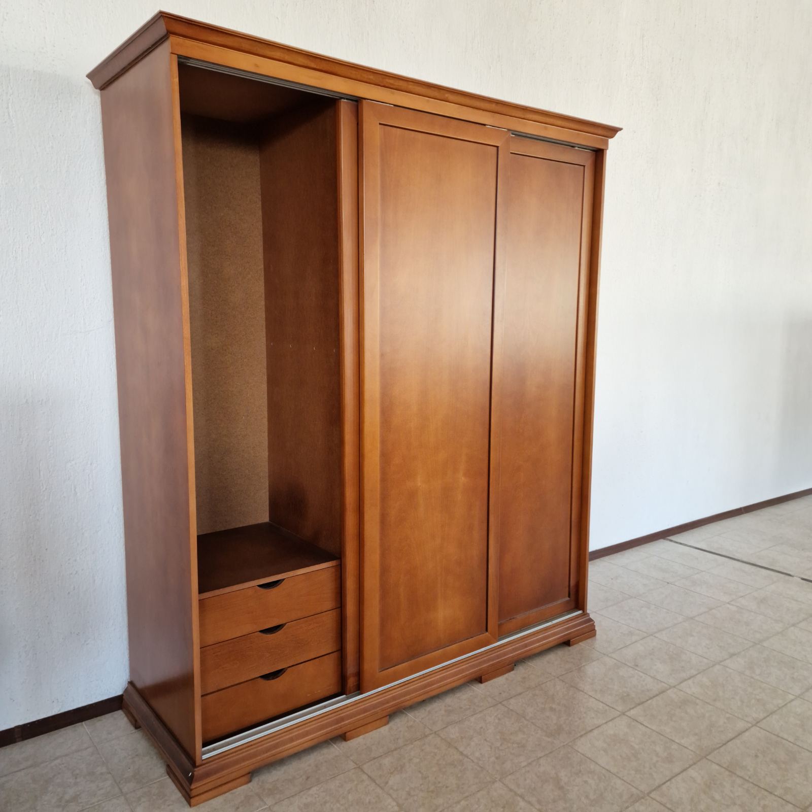 С плъзгащи врати, този гардероб предлага лесен достъп до дрехите и аксесоарите ви, като спестява място в помещението. Изработен от висококачествени материали, той гарантира здравина и дълготрайност, като същевременно добавя елегантен и съвременен акцент към интериора.