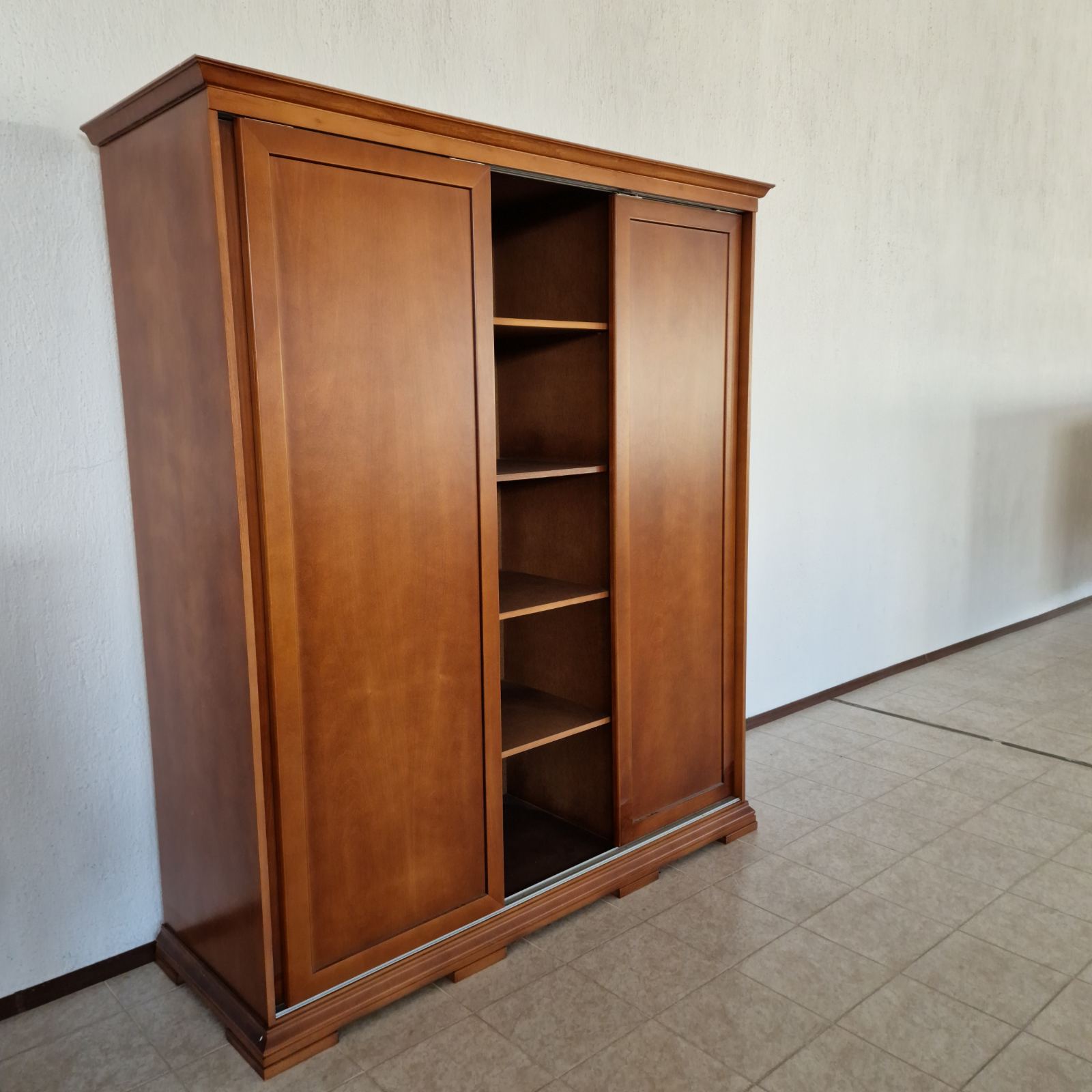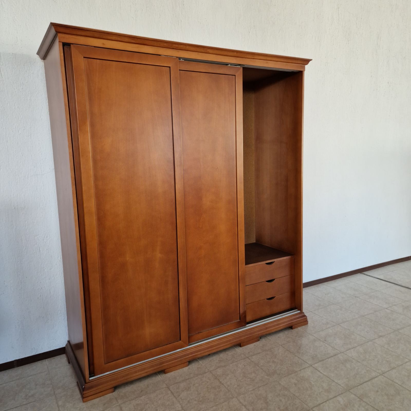 Вътрешното пространство е оптимизирано за максимално съхранение, подходящо за всичко от ежедневни дрехи до сезонни принадлежности. Този голям масивен гардероб е изборът за всеки, който търси комбинация от практичност и изискан дизайн.