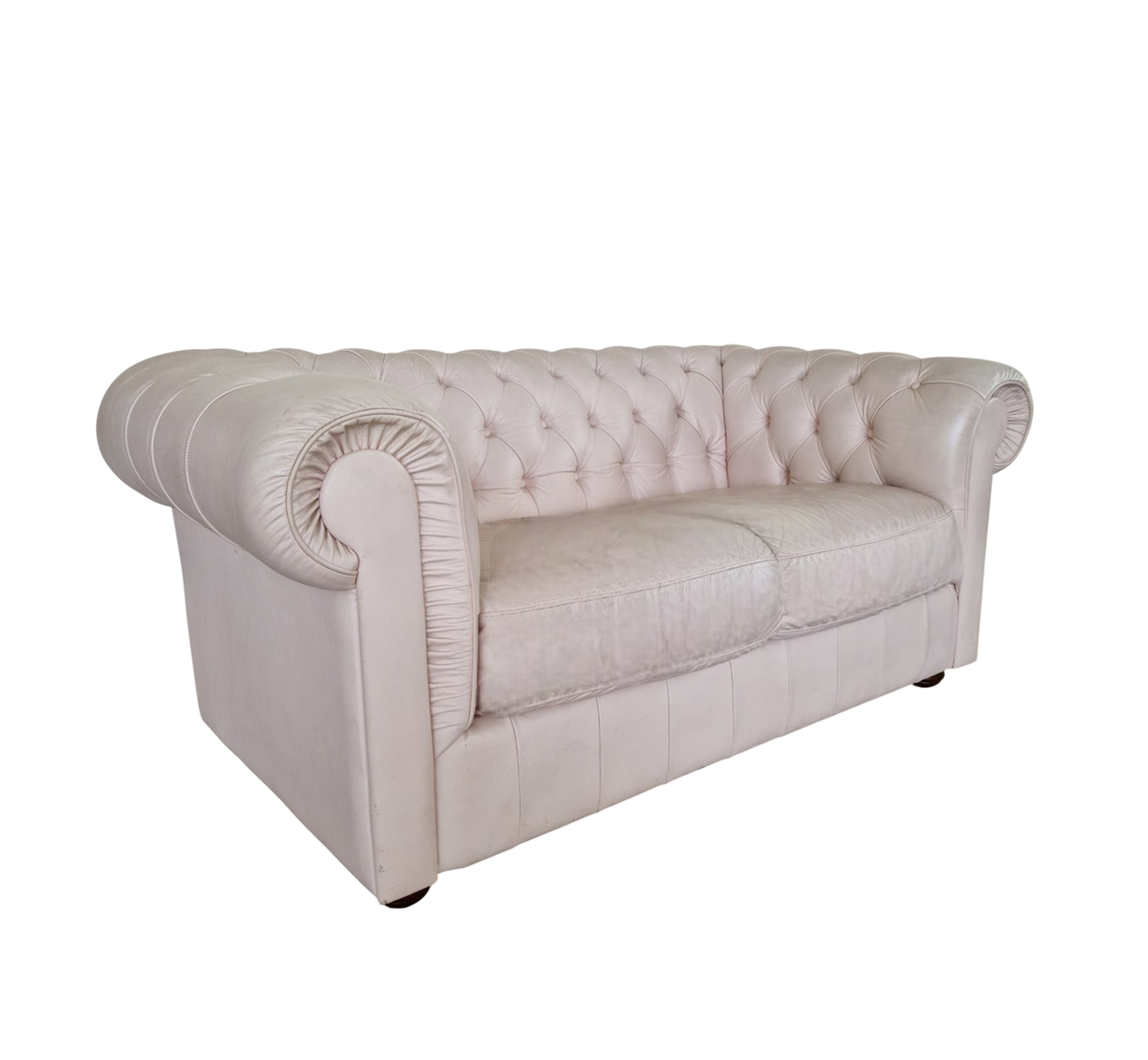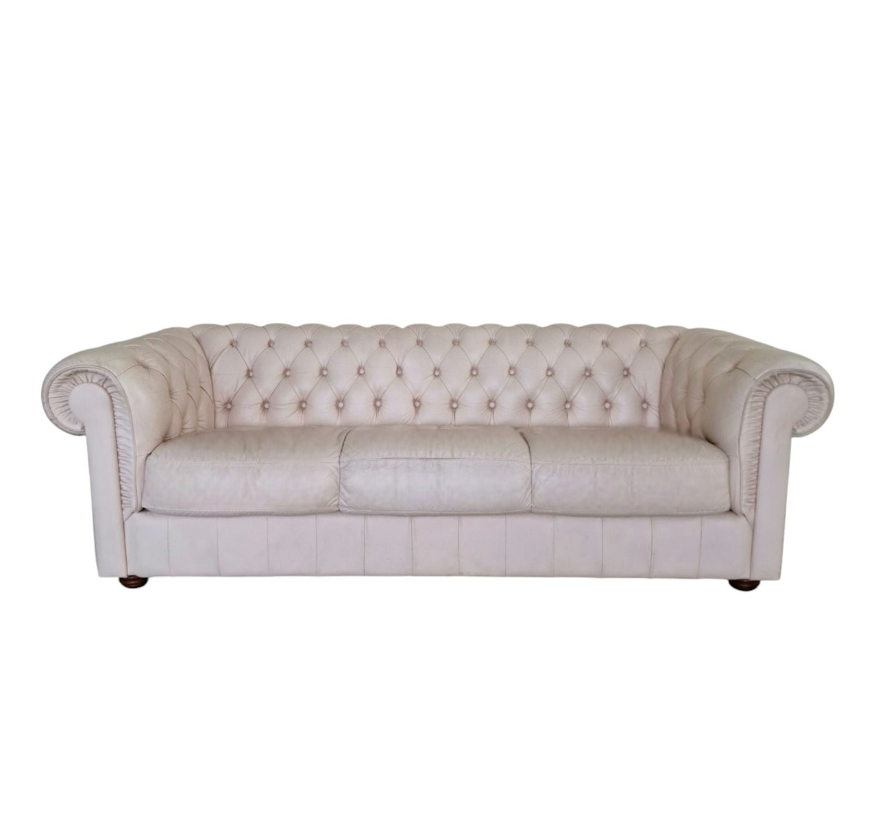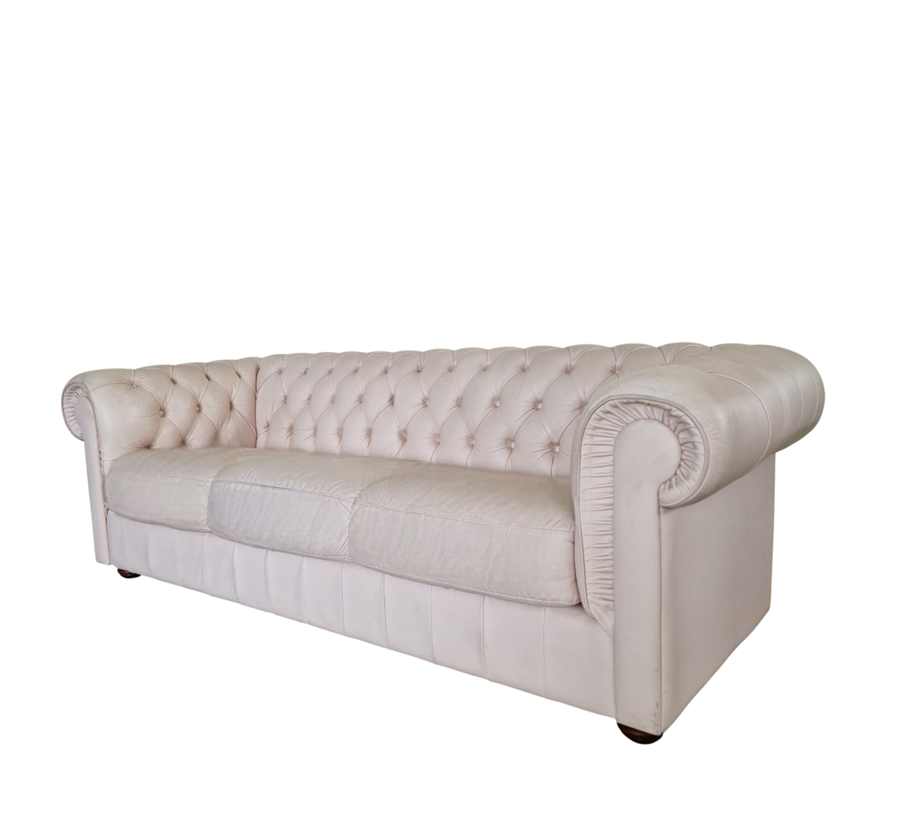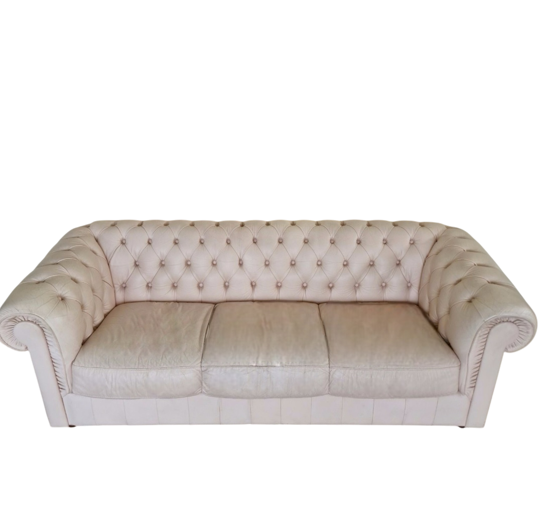 Тази изключителна холна гарнитура Chesterfield включва тройка диван, двоен диван и табуретка, изработени от естествена телешка кожа, която предлага не само изключителен комфорт, но и безупречен стил. Въпреки наличието на леки следи от употреба, гарнитурата е в много добро състояние и запазва своята елегантност и издръжливост. Коженото покритие придава на интериора луксозен и изтънчен вид, който ще внесе класическа атмосфера във всяко помещение. Това е комплект, който съчетава комфорт и красота.