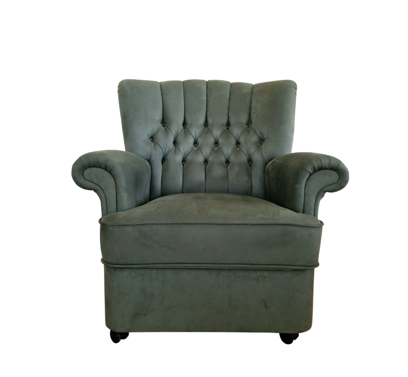 Предлагаме Ви елегантен фотьойл Chesterfield в наситен тъмно зелен цвят, този фотьойл носи усещане за стил, изтънченост и уют.
