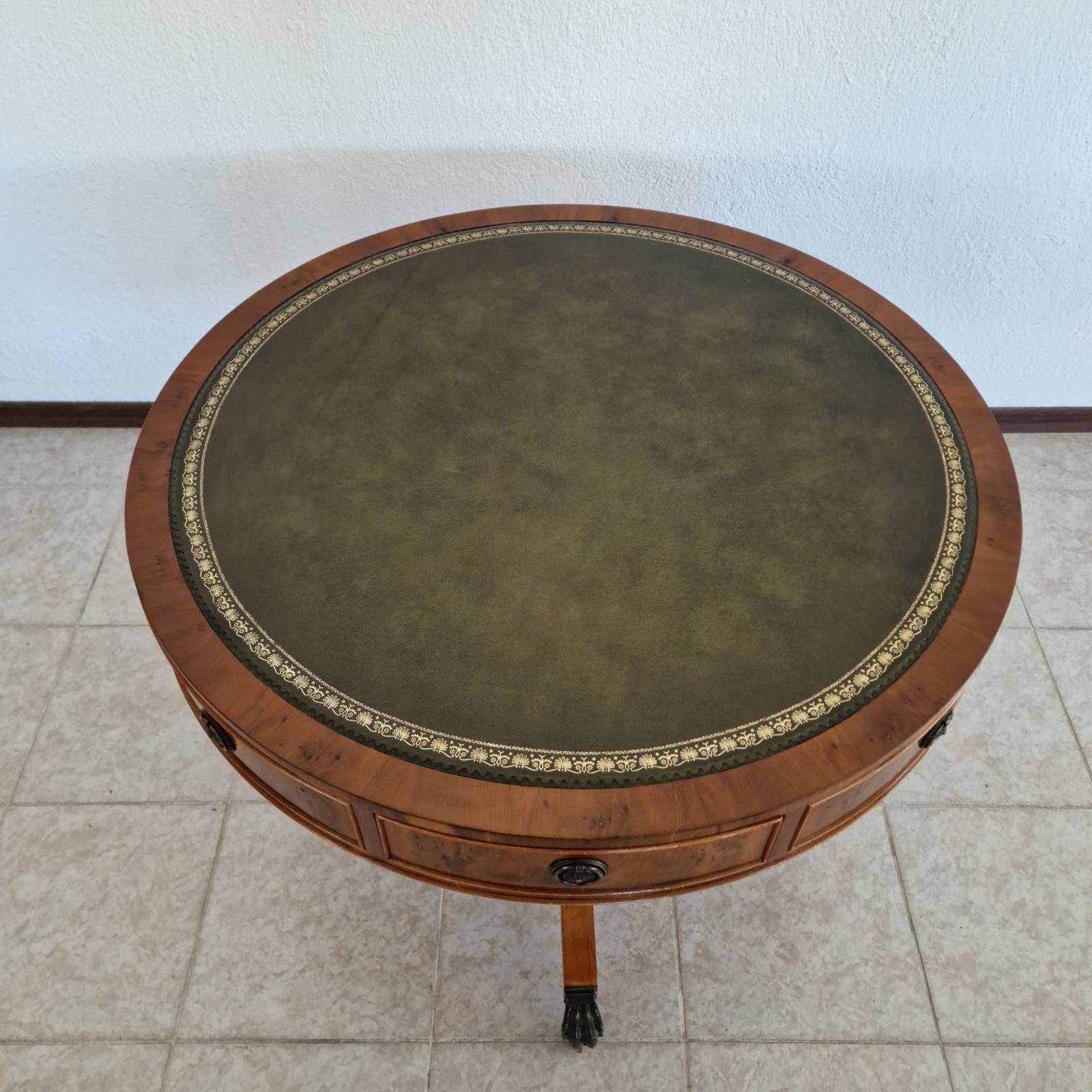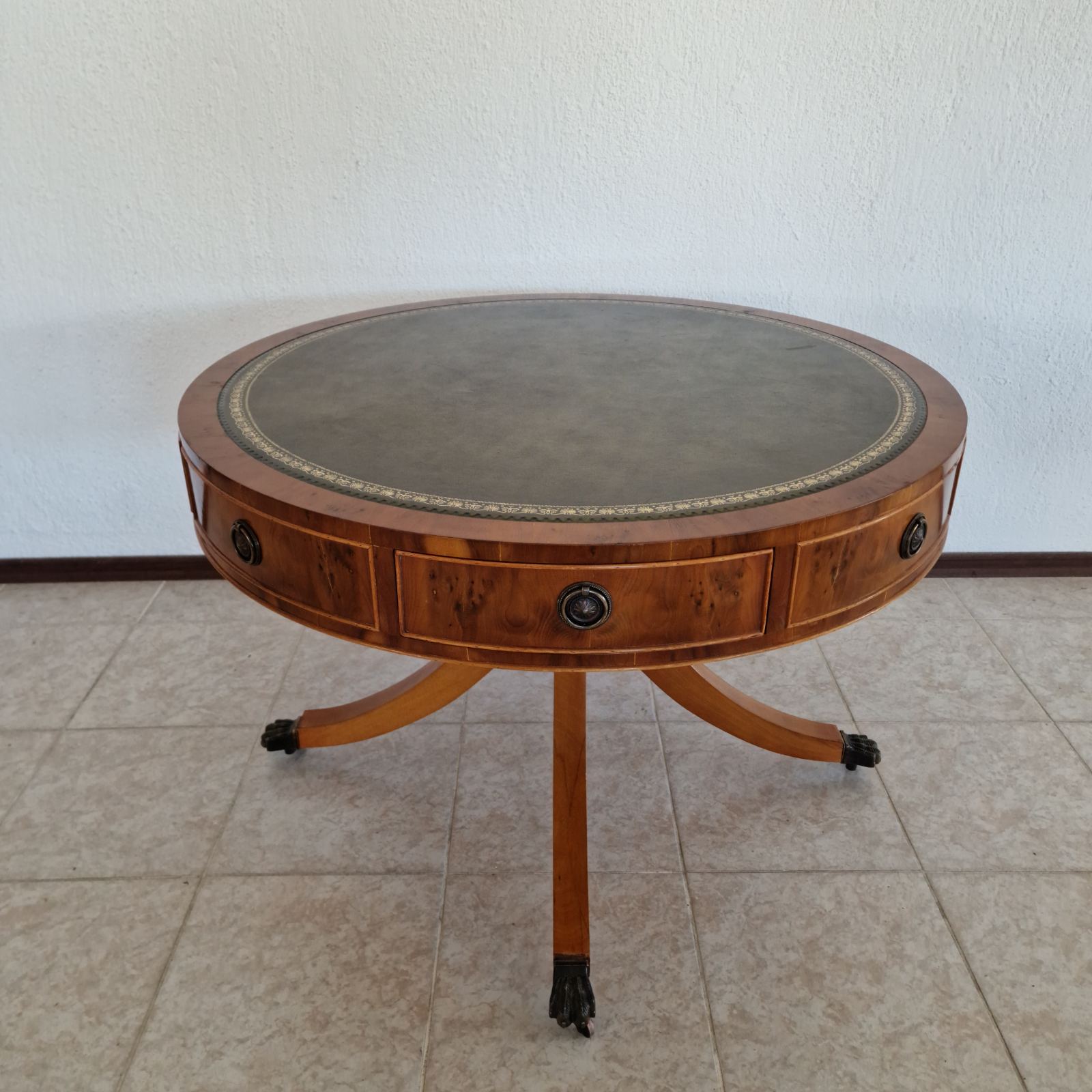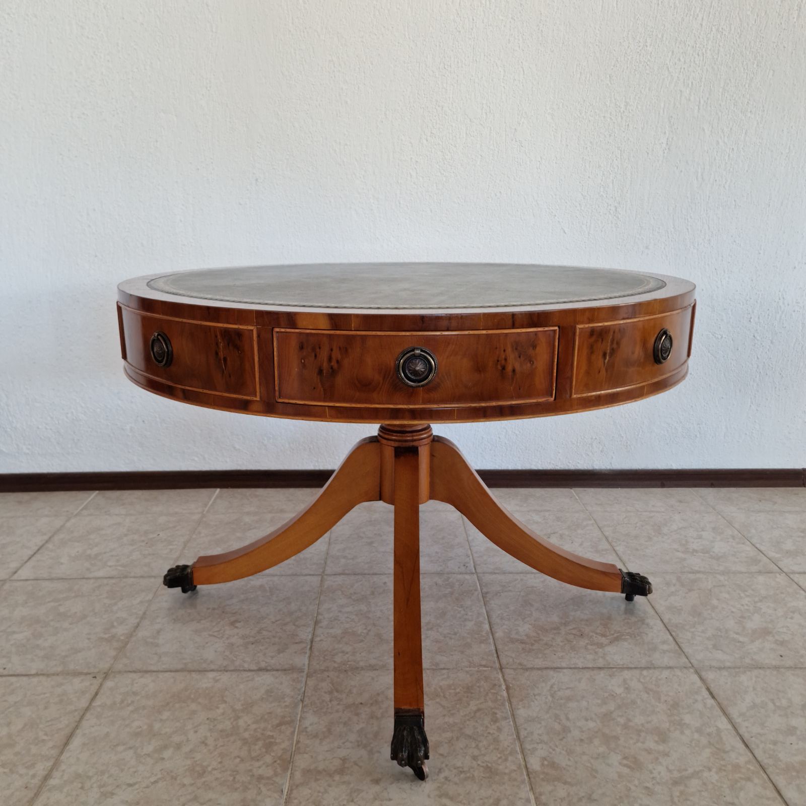 Изящните месингови дръжки и декоративни месингови орнаменти придават аристократичен характер и подчертават високия клас на изработка. Крачетата на колела с месингово покритие добавят както стилен завършек, така и практичност – масата се премества лесно, без да се нарушава елегантният й вид.