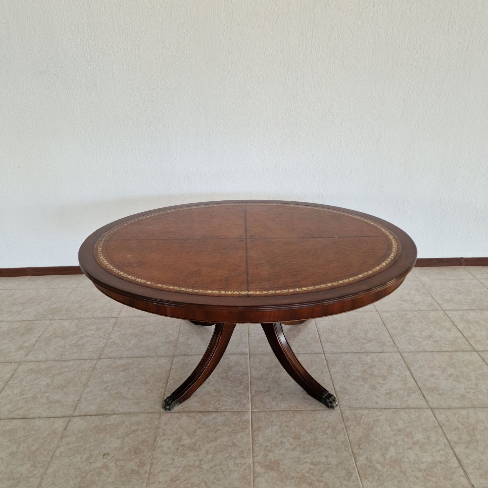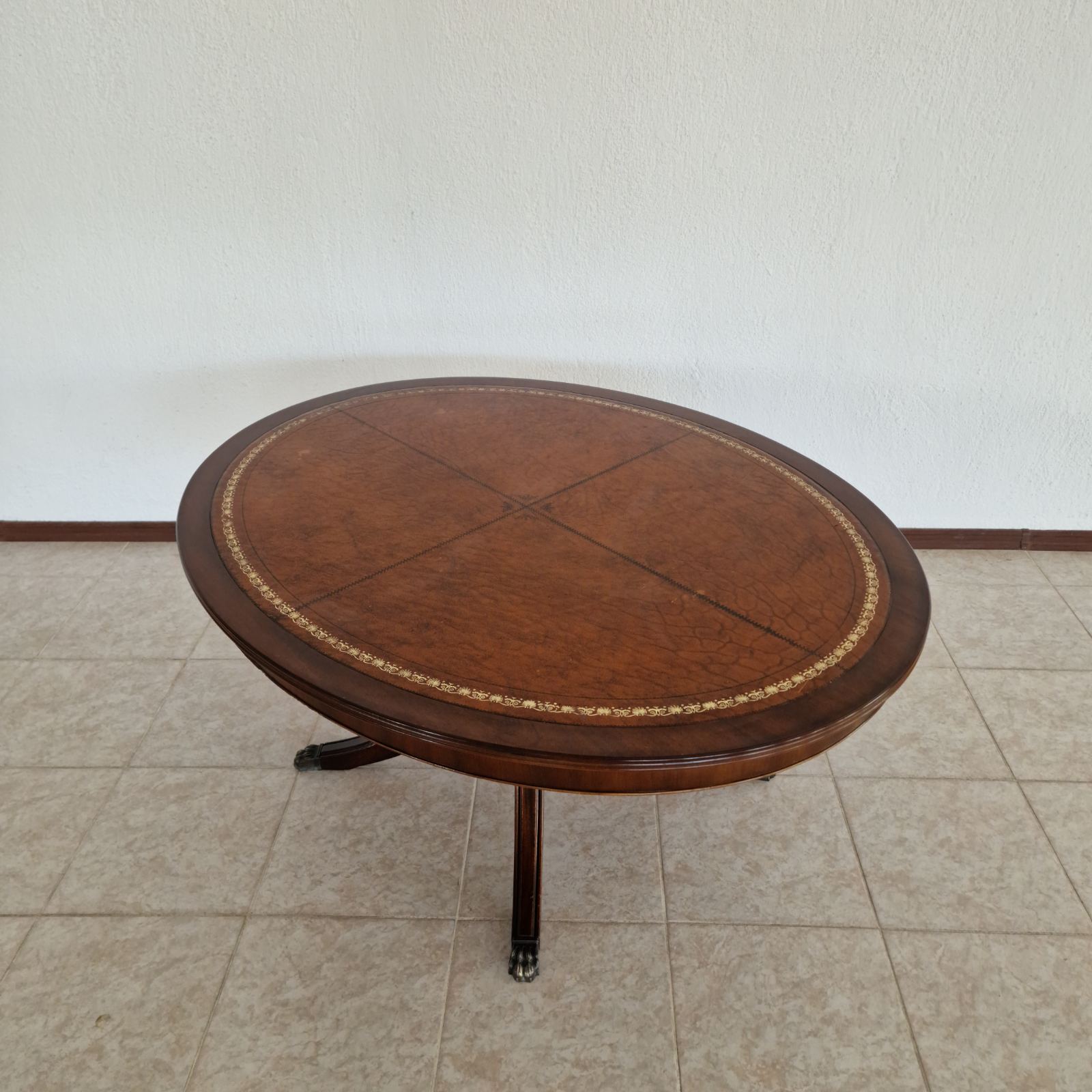 Тази маса е покрита с висококачествена естествена кожа, която добавя луксозен и изискан акцент към всекидневната ви. Месинговите крачета придават фин детайл и стабилност, създавайки усещане за престиж и стил.