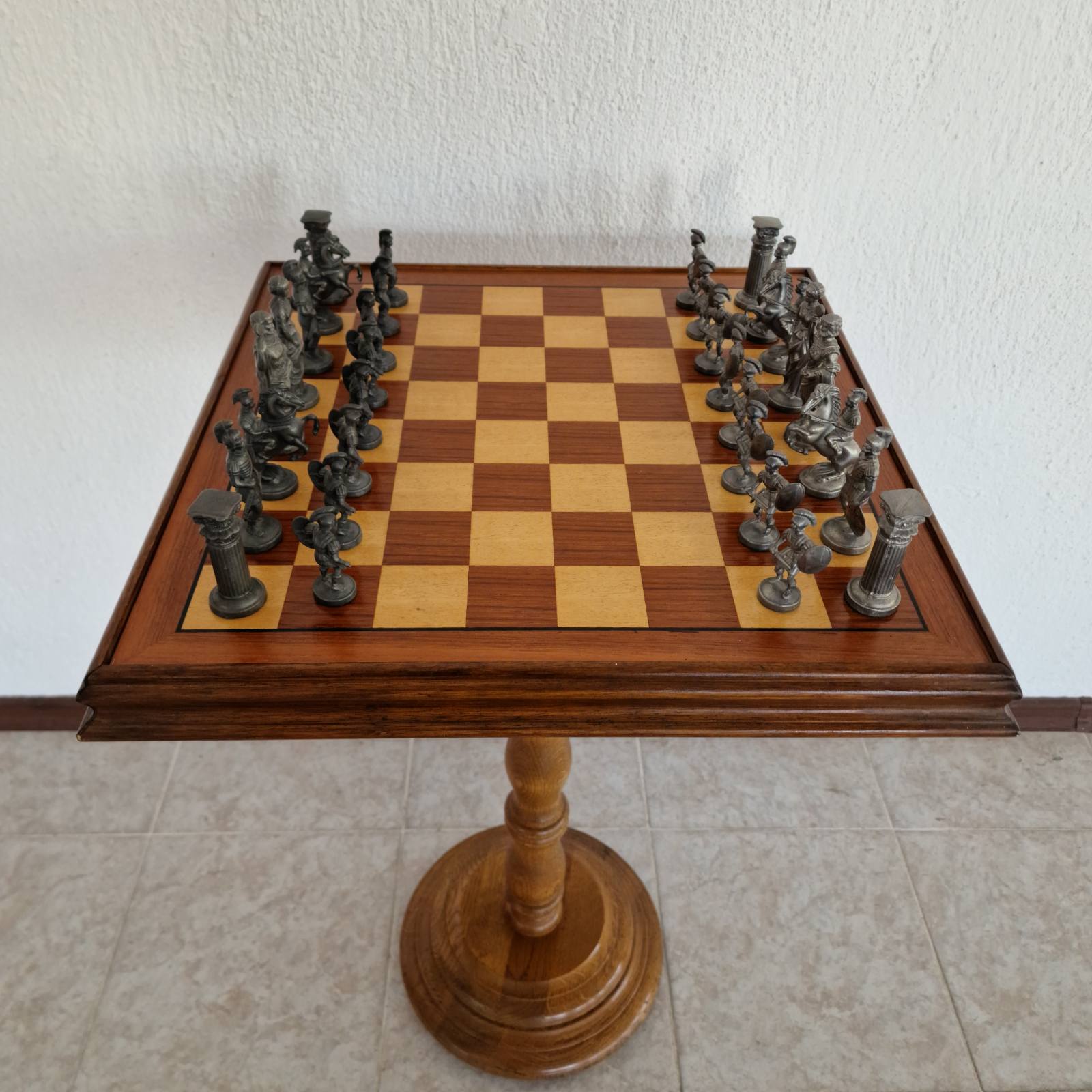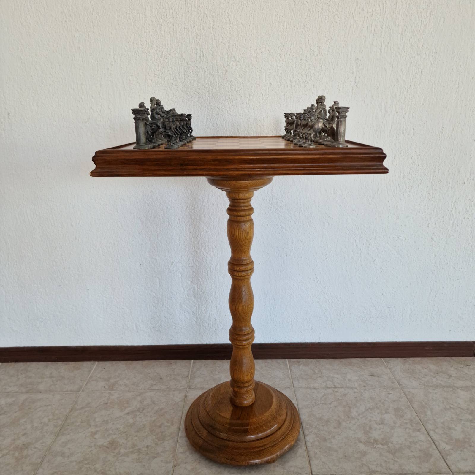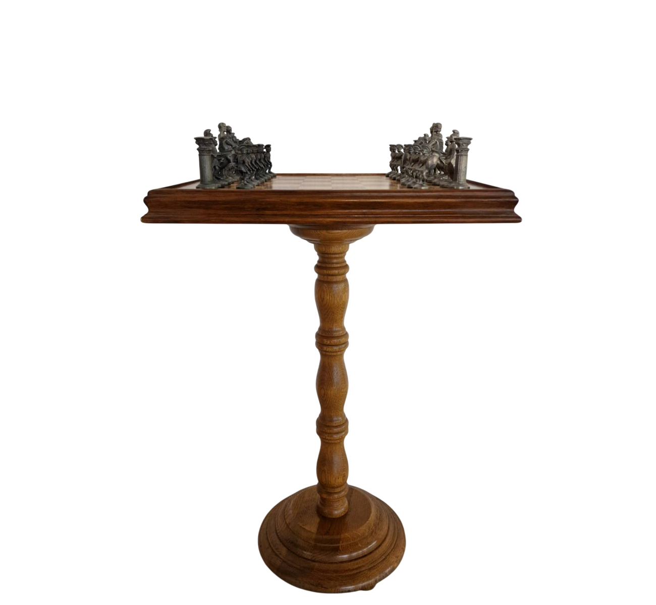 Елегантна и стилна маса за шах, изработена от масивен дъб – съчетание от издръжливост, естетика и изискан вкус. Комплектът включва оловни шахматни фигури, с изящна изработка и приятно усещане при игра.