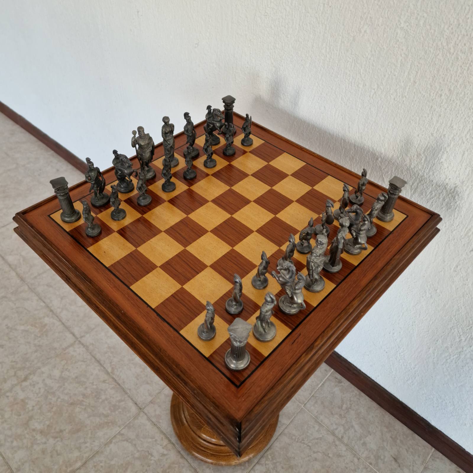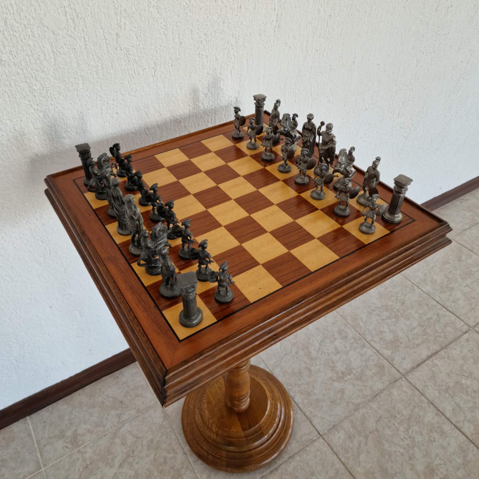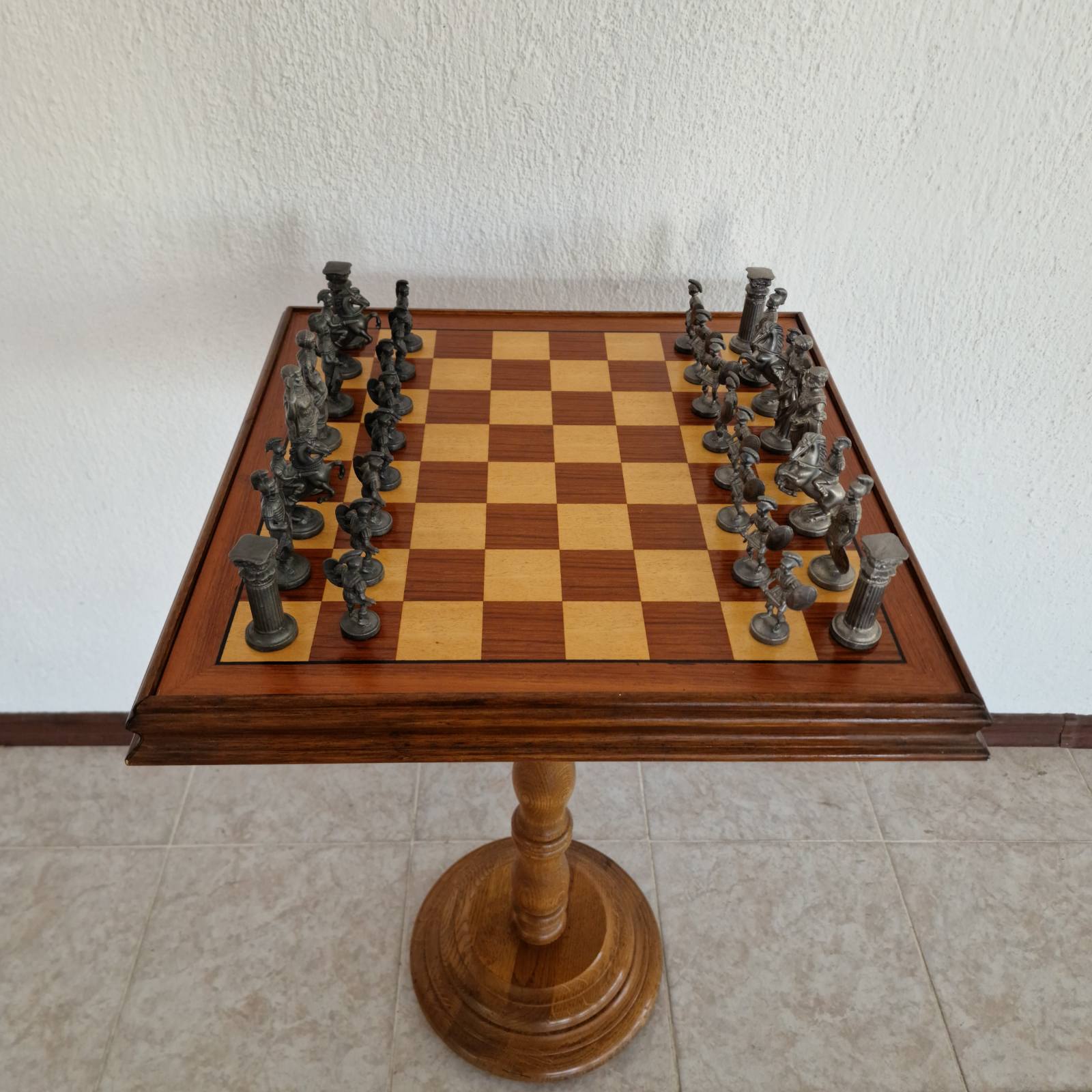 Елегантна и стилна маса за шах, изработена от масивен дъб – съчетание от издръжливост, естетика и изискан вкус. Комплектът включва оловни шахматни фигури, с изящна изработка и приятно усещане при игра.