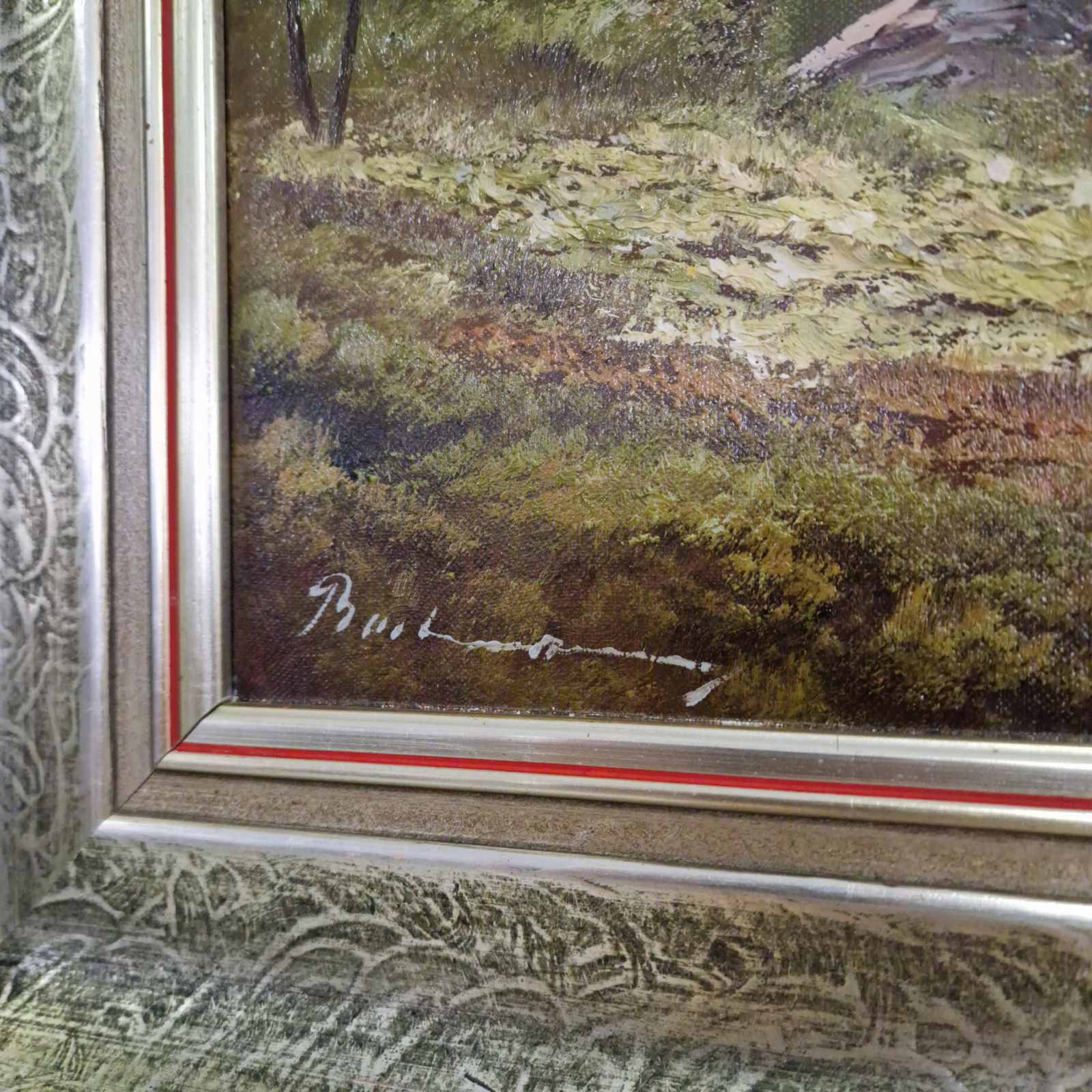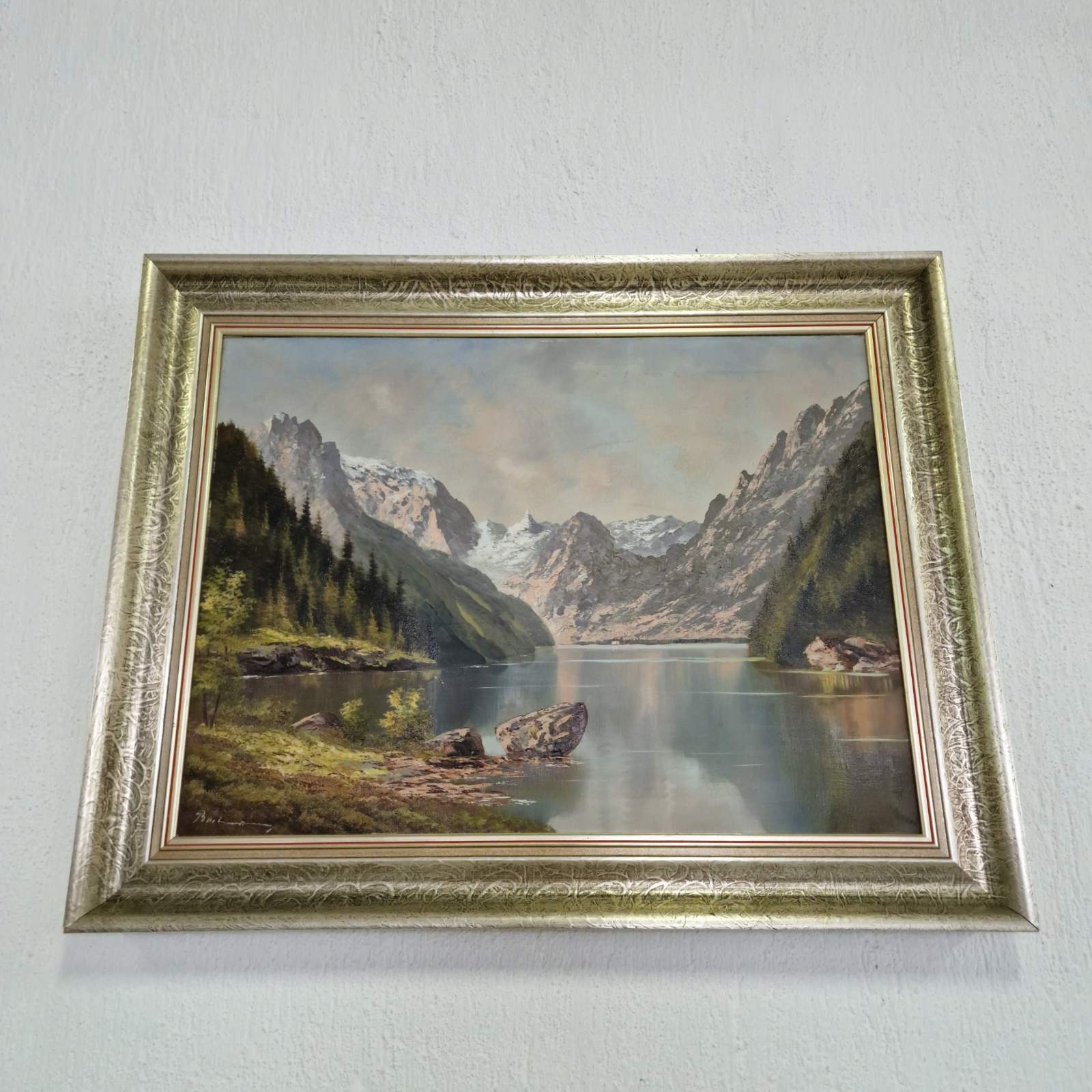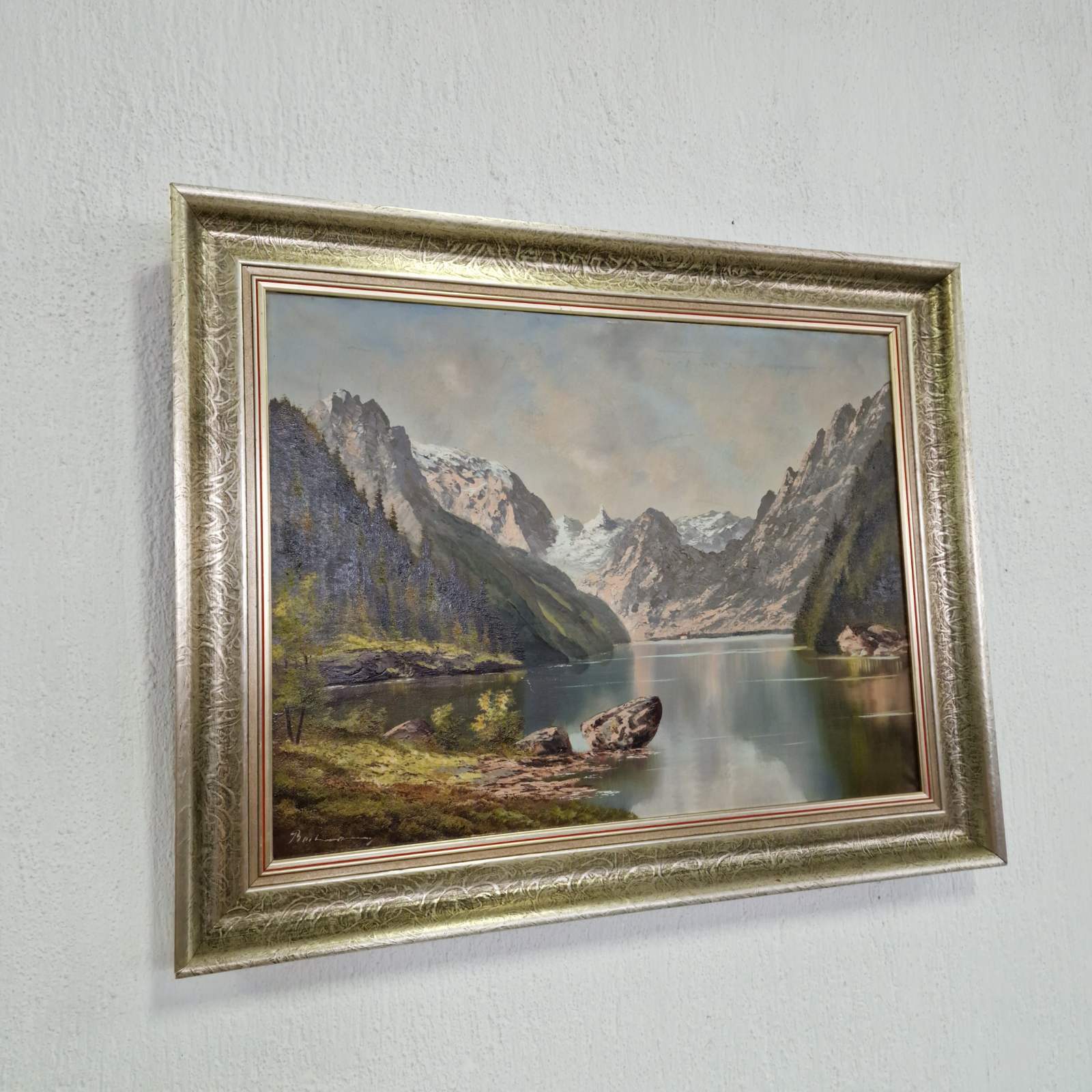 Маслена живопис върху платно – планински пейзаж с езеро