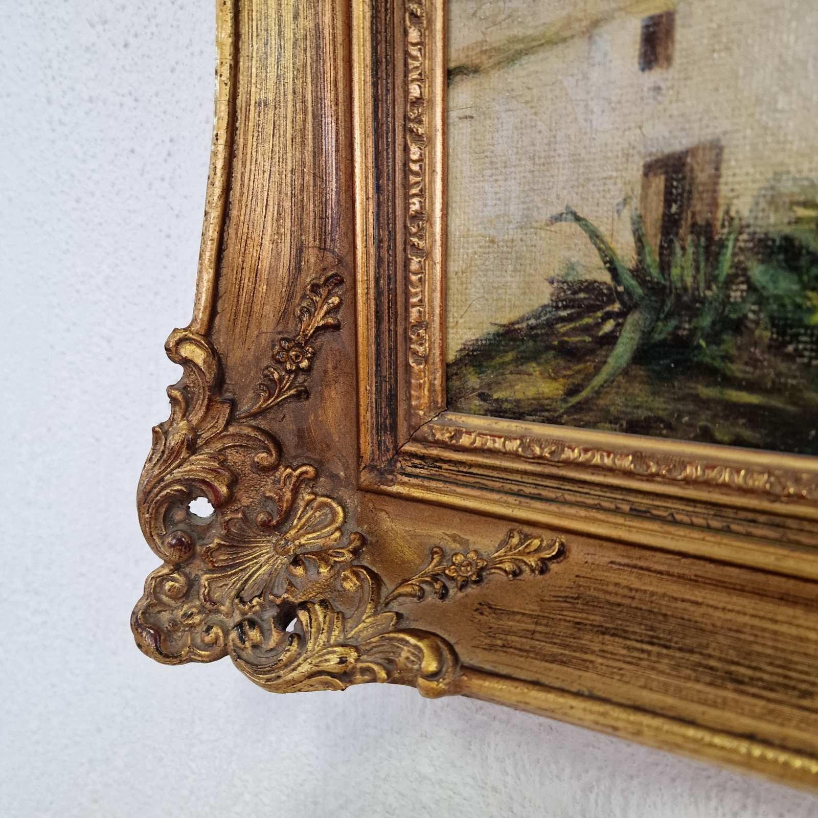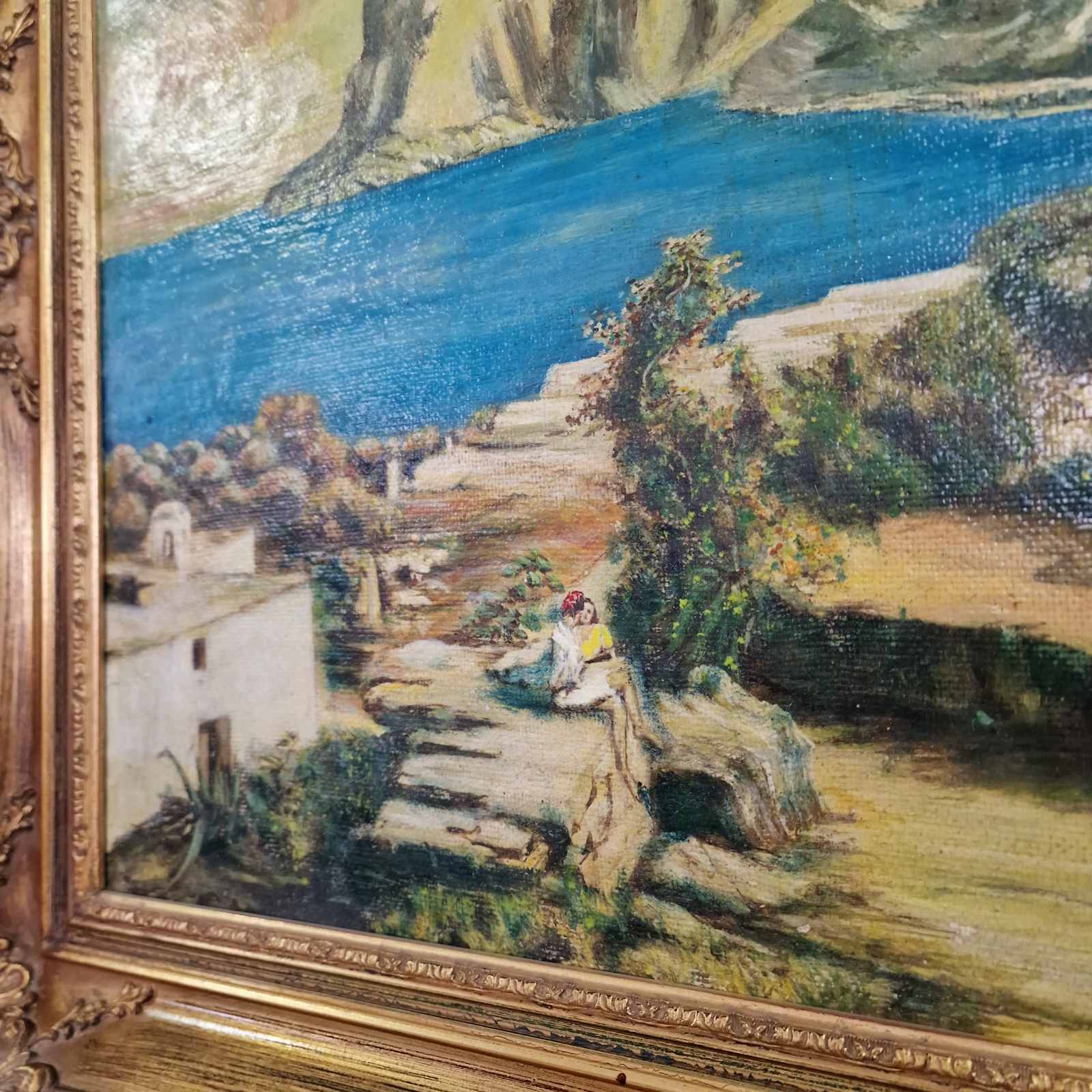Произведението е изпълнено в традиционна маслена техника и е поставено в богато орнаментирана златна рамка в бароков стил, която допълва художествената и декоративната стойност на картината. Стилът и композицията са типични за европейската пейзажна живопис от първата половина на ХХ век, когато средиземноморските мотиви са били особено популярни сред художниците.