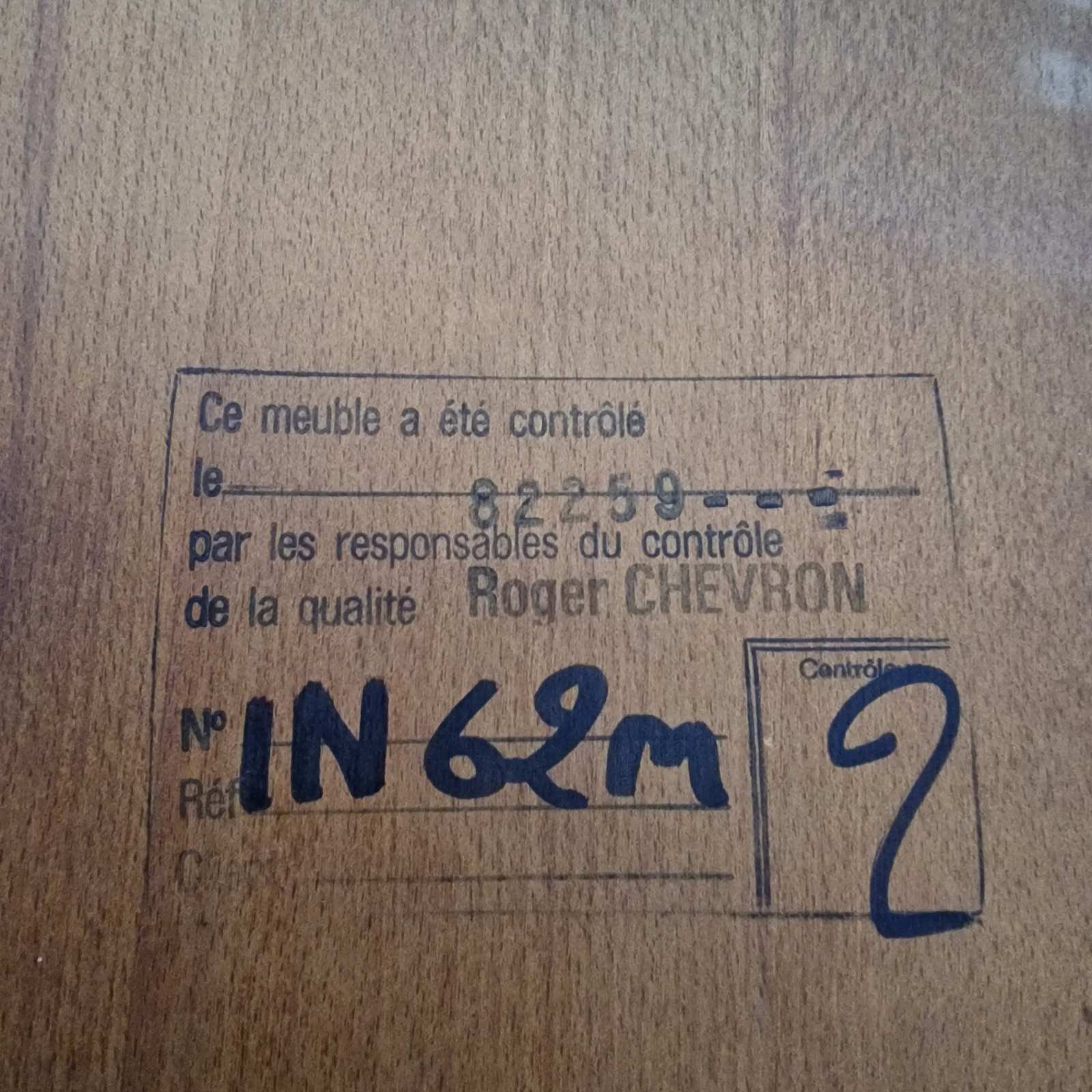 Произведен е от френския майстор Roger Chevroun, известен с традиционния си подход към мебелното изкуство, високите стандарти за подбор на материали и строгия контрол върху всяка фаза от изработката. Запазеният оригинален фабричен печат за контрол на качеството удостоверява автентичността на изделието и потвърждава, че то е преминало индивидуална проверка.