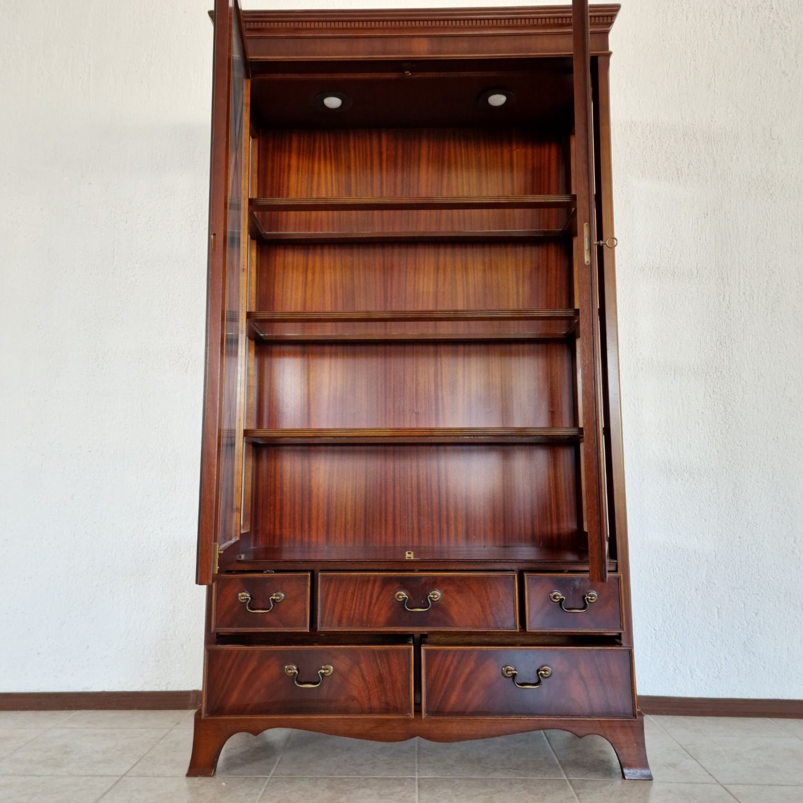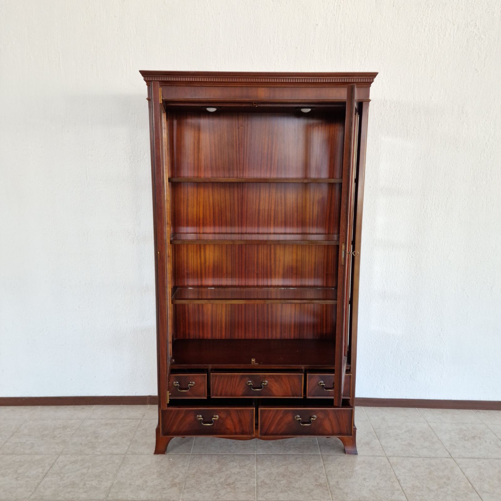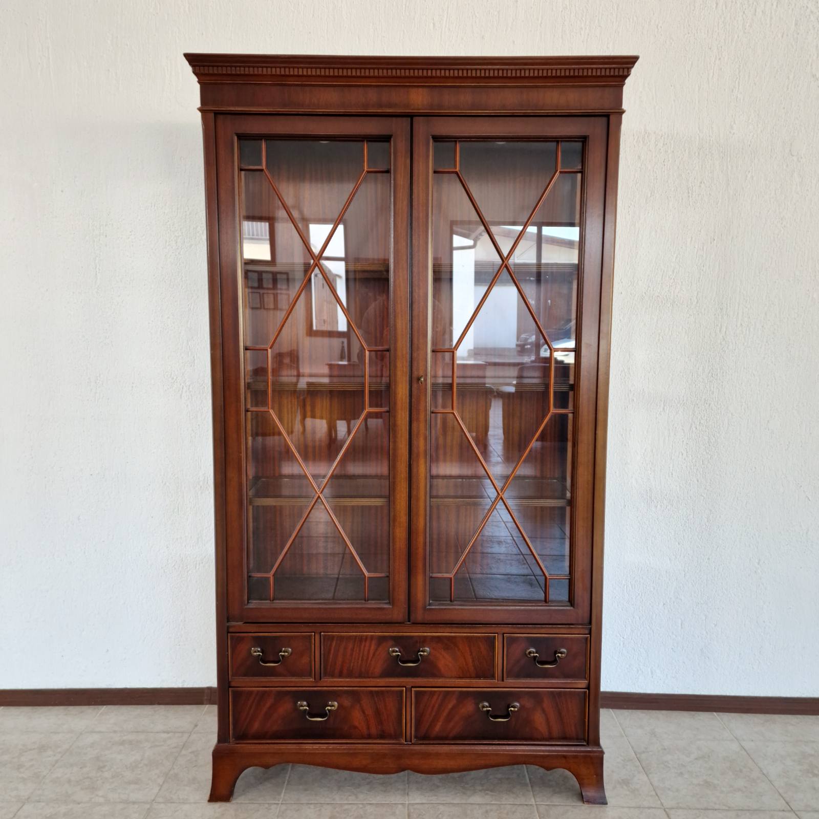 Впечатляваща витрина–библиотека в стил Chesterfield, изцяло ръчна изработка от масивен махагон – символ на класа, вкус и английска елегантност. Всеки детайл е изработен с изключителна прецизност и внимание, подчертавайки неповторимия характер на тази мебел.
