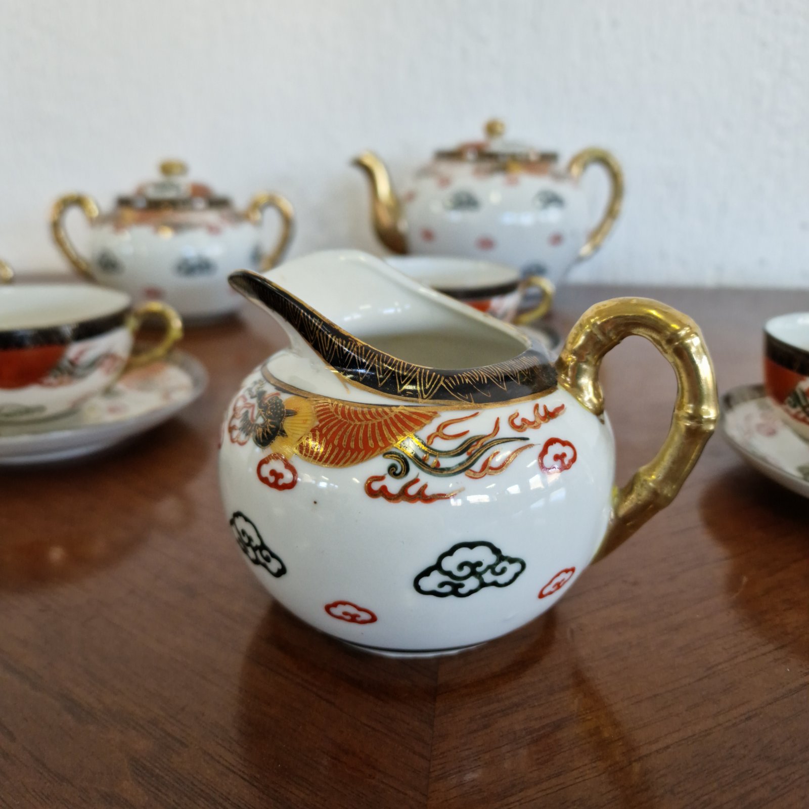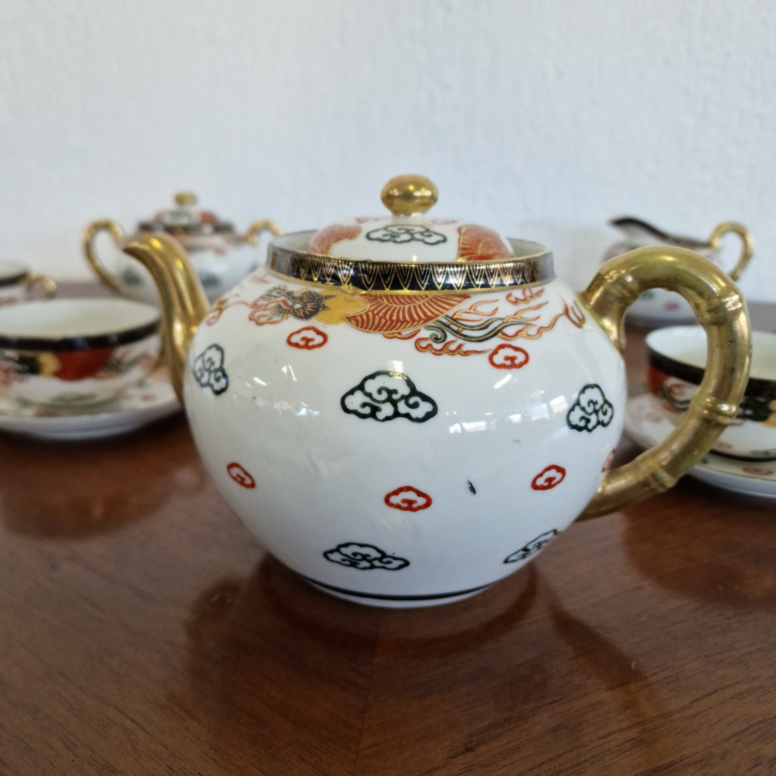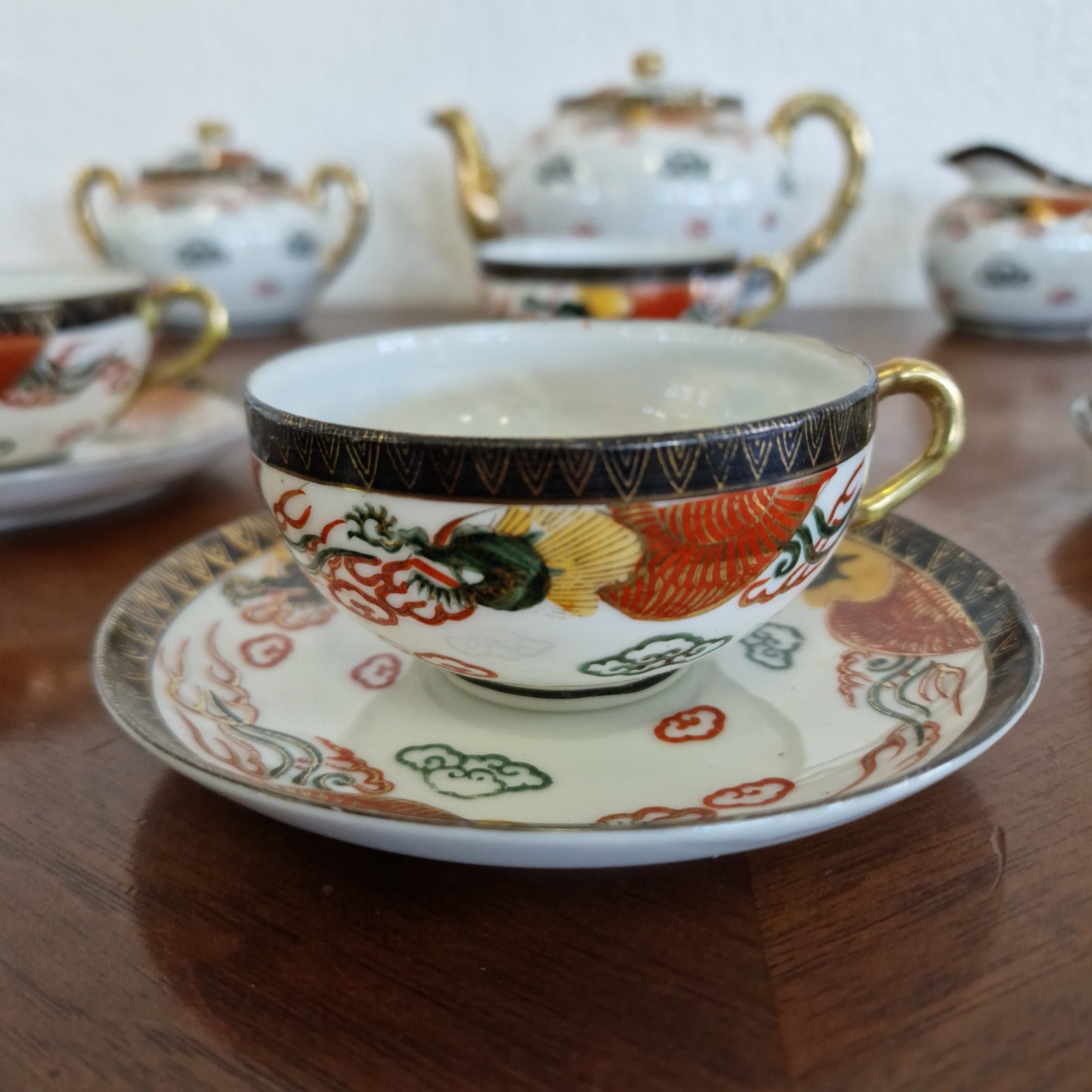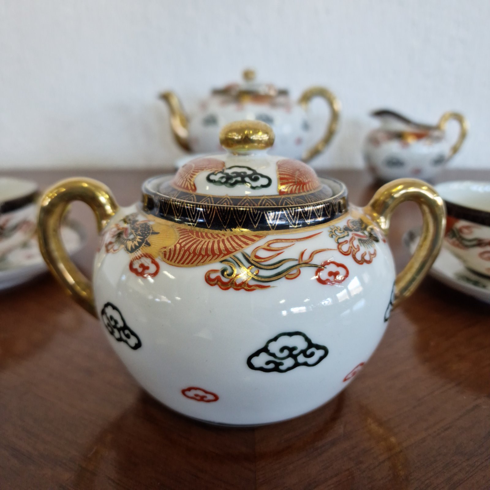 Изискан японски фин костен порцелан, отличаващ се с фина изработка, деликатни форми и характерна ориенталска естетика. Материята е лека, здрава и с мек, копринен блясък, който подчертава високото качество на изделието. Декорацията е изпълнена с внимание към детайла и придава автентичен японски характер. Подходящ е както за колекционери, така и за декоративна употреба или стилна трапеза. Истинско допълнение към класически и елегантен интериор.