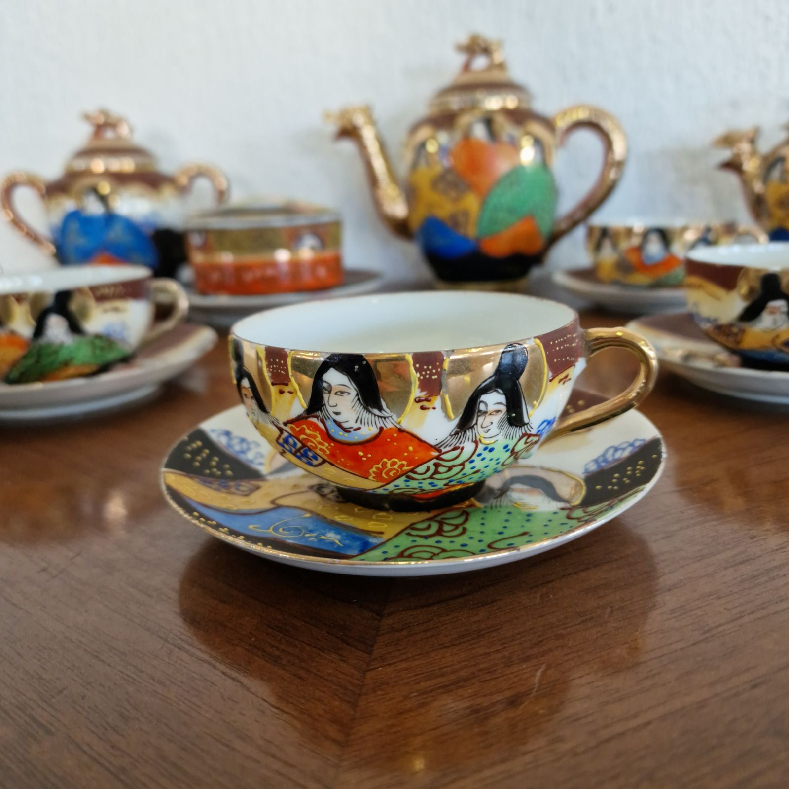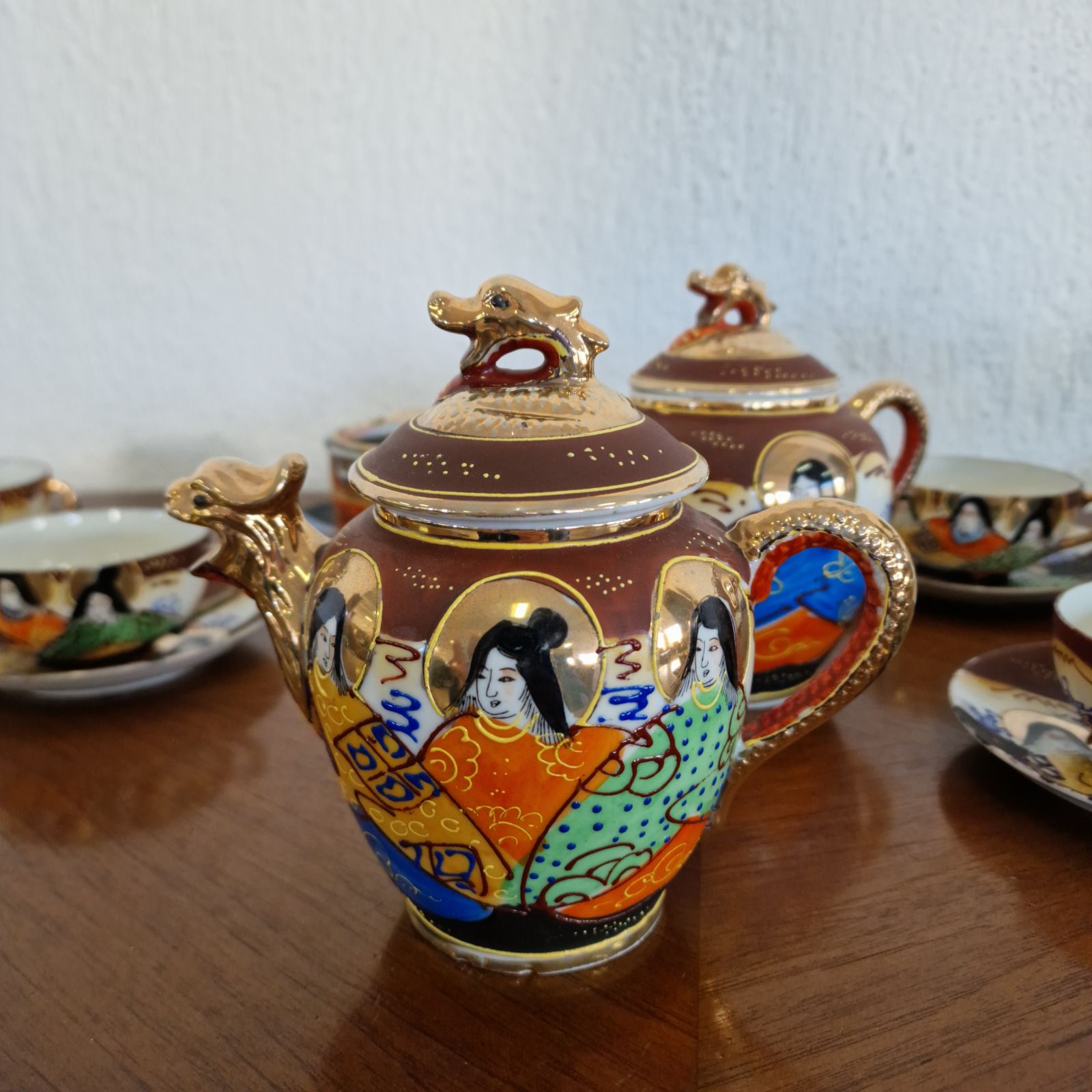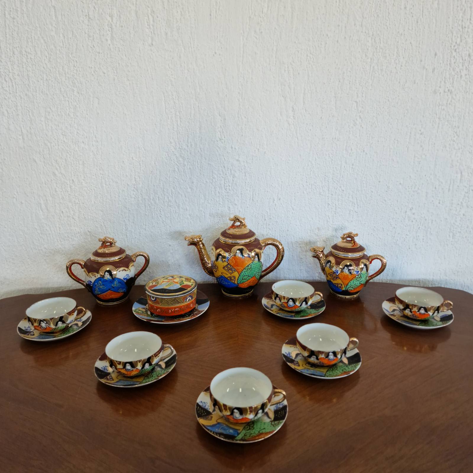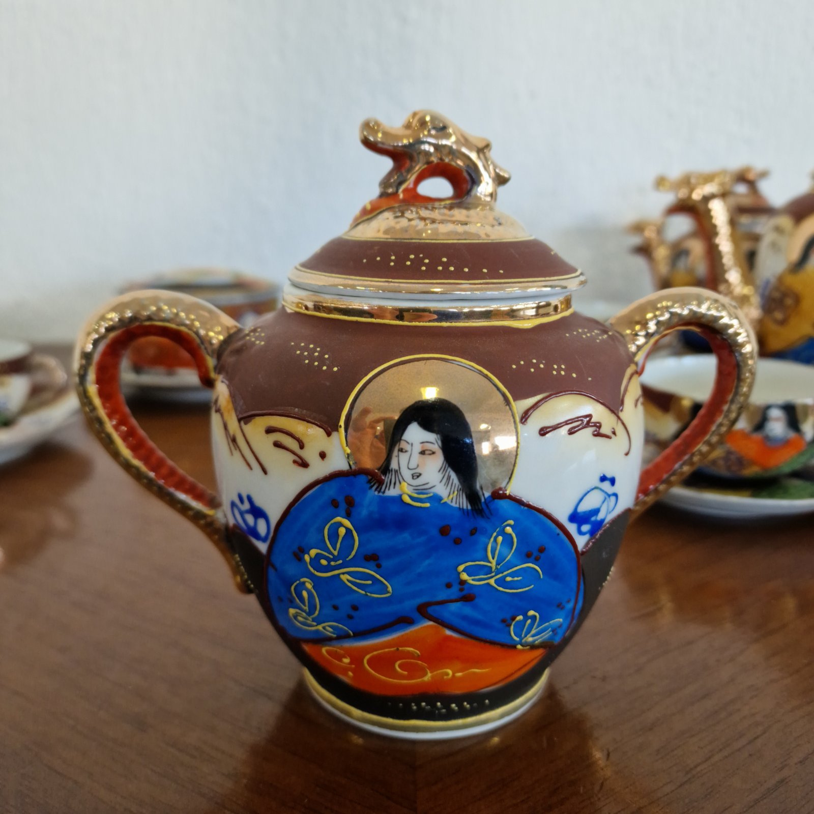 Изключително красив японски фин костен порцелан в стил Satsuma, впечатляващ с богата ръчна декорация, ориенталски фигурални сцени и характерна златна орнаментика. Фината изработка и топлата цветова гама подчертават декоративния характер на изделието и придават силно присъствие. Порцеланът е създаден като представителен и колекционен, предназначен за витрина или класически интериор. Носи автентичен чар и усещане за лукс, което го прави подходящ за ценители и любители на изящния порцелан.