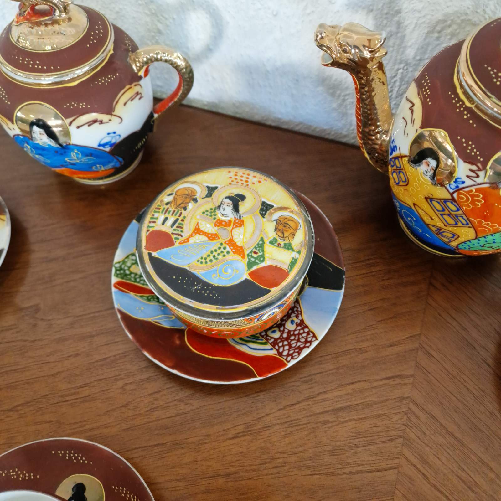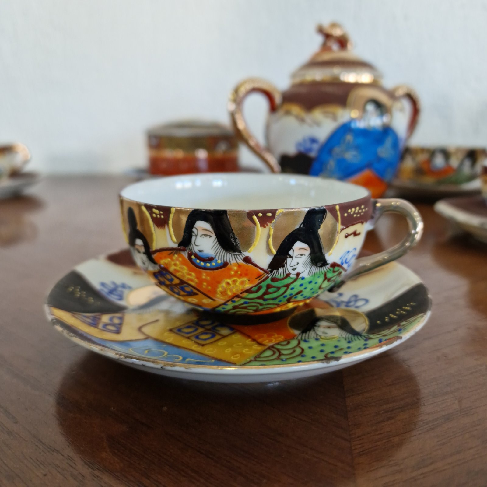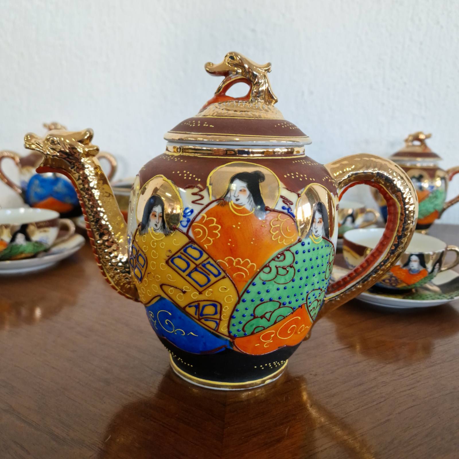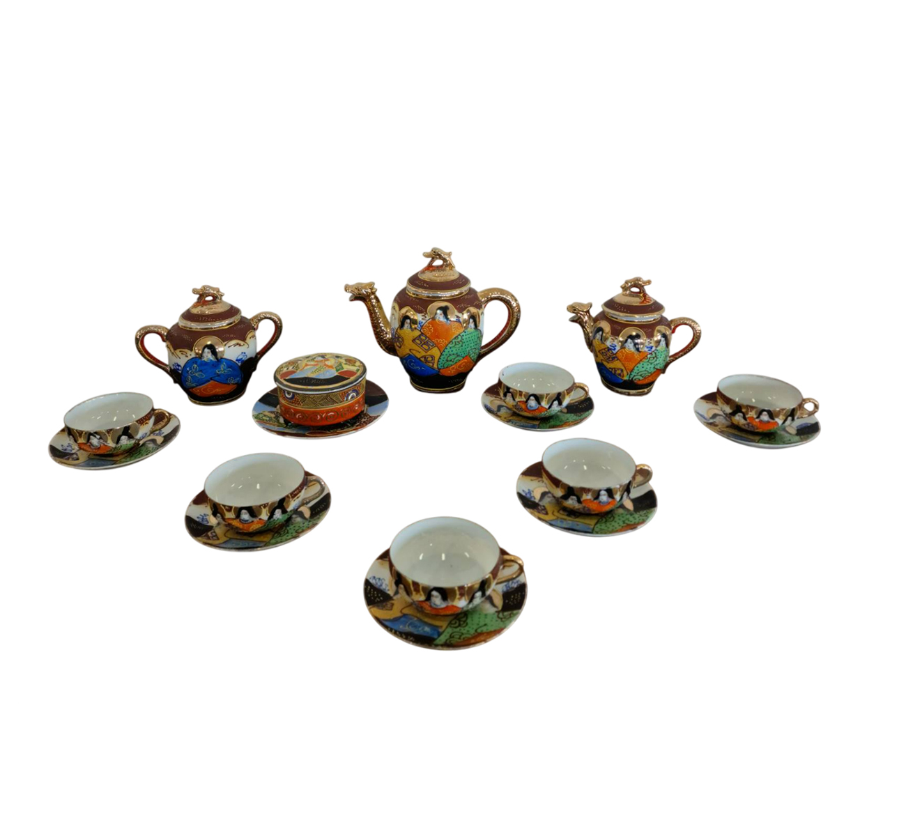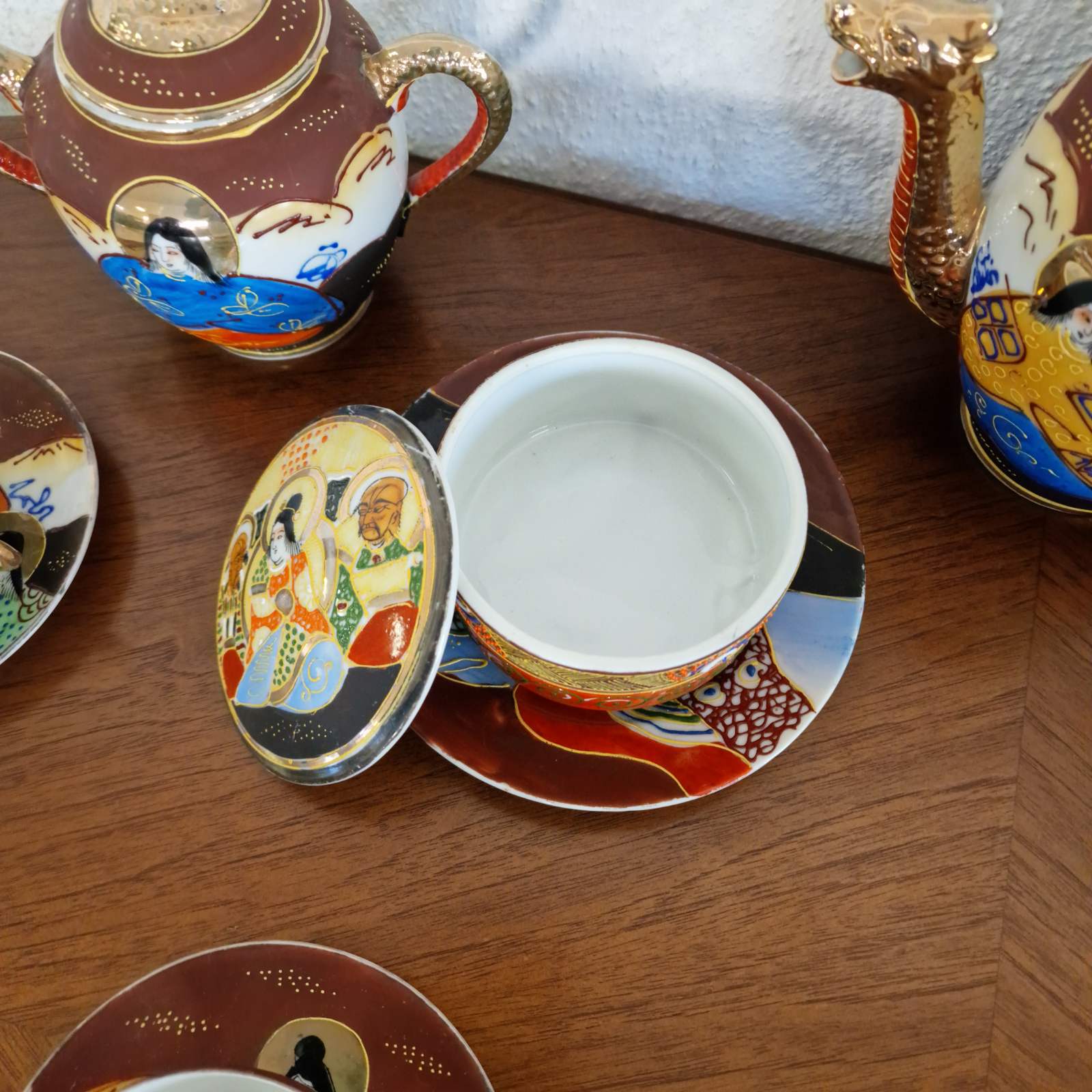 Изключително красив японски фин костен порцелан в стил Satsuma, впечатляващ с богата ръчна декорация, ориенталски фигурални сцени и характерна златна орнаментика. Фината изработка и топлата цветова гама подчертават декоративния характер на изделието и придават силно присъствие. Порцеланът е създаден като представителен и колекционен, предназначен за витрина или класически интериор. Носи автентичен чар и усещане за лукс, което го прави подходящ за ценители и любители на изящния порцелан.